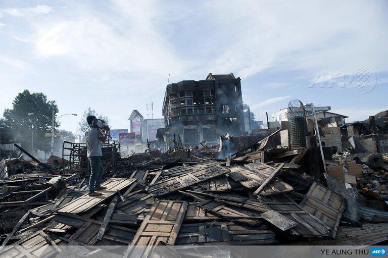#PHOTO: A cameraman films the remain of a fire in Lashio, Northern Shan state of Myanmar pic.twitter.com/coJcBebWsz