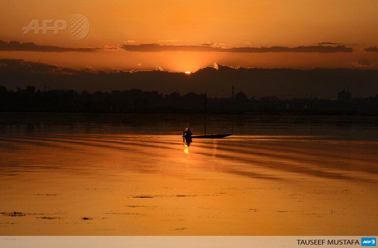 #PHOTO: A Kashmiri fisherman paddles his boat during sunset on Dal Lake in Srinagar, by @TauseefMUSTAFA pic.twitter.com/Li91X3EdlB